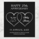 Elegant black background with silver hearts and sparkling numbers. 25th anniversary of marriage