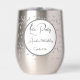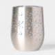 Three separate areas of customization are featured on this silver sparkles wine tumbler.
