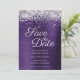 Silver Sparkly Glitter Dark Violet Ombre Foil Save The Date