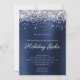 Silver Sparkly Glitter Navy Blue Foil Holiday Invitation