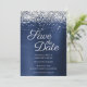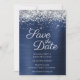Silver Sparkly Glitter Navy Blue Ombre Foil Save The Date
