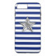 A silver chrome like star design on a navy blue stripes decor. A modern nautical gift for your device.