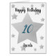 Personalized boy birthday card that features stars sprinkled across the front. You can easily personalize the big silver star with his age and name underneath the star. The inside card message reads "Happy Birthday to the best kid ever!" and can also be easily personalized if you wanted. The back of this personalized boy's birthday card reads "Happy Birthday 2018".