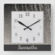 Silver Streaks Metallic Stripe Pattern Modern Square Wall Clock