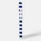 A silver chrome like lighthouse design on a navy blue stripes decor. A modern nautical gift for your device.
