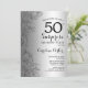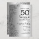 Silver Surprise 50th Birthday Party Invitation. Glam feminine design featuring faux silver foil, botanical accents and typography script font. Simple floral invite card perfect for a stylish female surprise bday celebration. Can be customized to any age. Printed Zazzle invitations or instant download digital printable template.