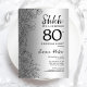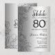 Silver Surprise 80th Birthday Party Invitation. Glam feminine design featuring botanical accents and typography script font. Simple floral invite card perfect for a stylish female surprise bday celebration. Can be customized to any age. Printed Zazzle invitations or instant download digital printable template.