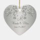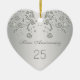 Silver floral swirls, leaves and hearts 25th Wedding Anniversary Ornament