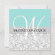 Light Blue Silver Swirls Wedding Invitations--- match the RSVP cards & more found below. Each invitation feature a silver & grey lower half of elegant printed swirls with a matching grey band that borders a pool blue shade at the top. Over top the design is a shaded monogram that you can customize to the groom's last initial. The bride & groom's first names are printed over top the band in bold text. The back of each Blue wedding invitation features the same design concept with a peek through text box that allows the graphics to show through.
