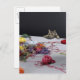 Silver tabby cat climbing over edge of table postcard