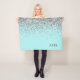 Silver Teal Aqua Blue Girly Glitter Monogram Fleece Blanket