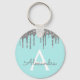 Silver Teal Aqua Blue Sparkly Glitter Monogram Keychain