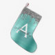 Silver Teal Glitter Brushed Metal Monogram Name Small Christmas Stocking