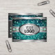 Silver Teal Glitter Sparkle Rhinestones add Logo Business Card