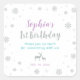 This cute birthday sticker features silver snowflakes and deer graphics. Perfect for a winter wonderland theme 1st birthday party favours or Decor. More matching items available in my Winter Wonderland collection. (invitation, thank you card, thank you tag, banner, and more)