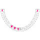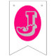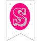 Silver JUST MARRIED bunting flags, initials and magenta hearts on a white background. A versitile banner or Bunting flags for most weddings because of the colour use with silver letters and magenta hearts on white. The first flag has magenta doubleheart, the following flags has the lettering ‘JUST MARRIED» with the initials to the couple. The last flag has a magenta doubleheart again. Customize this Bunting flags with your letters for your big day.