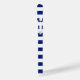 A silver chrome like tall anchor design on a navy blue stripes decor. A modern nautical gift.
