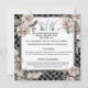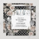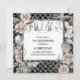A beautiful square frame is edged with delicate watercolor roses in shades of pale white and dusty pink which form a border around black templates and faux sparkling glitter sequins; balloons and jewel strands set on a black and white mermaid scales background. The corners have delicate faux silver flourish swirls and a faux silver crown / tiara with diamond gem inlays appears along the top edge. Delicate fern leaves bring softness to this elegant and chic shabby french chic look. Ideal for a bridal shower; birthday party or special wedding anniversary celebration.