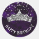 Silver Tiara with silver bokeh & Purple birthday Classic Round Sticker