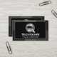 Over at the top is a silver truck logo that is made into a speech bubble, you can use. Below the logo is the business name "Truck For Hire" which you can change alongside the contact details.