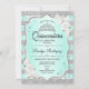 Quinceanera Party - Silver Invitation. Features stripes, script font, white roses, tiara and confetti. Classy turquoise, mint green design with faux glitter silver foil. Perfect for an elegant glam celebration.