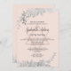 Silver typography Floral blush pink Bat Mitzvah party invitation with hand painted silver foliage. The blush pink background is fully customizable. Add your Hebrew name.