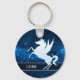 Silver Unicorn on Sparkly Blue Monogram Keychain