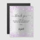 A faux silver looking background, decorated faux violet glitter, sparkles. Large hand lettered script and the text: Thank You. Personalize and add your thank you note and name.