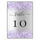 Silver violet lavender confetti wedding table number