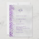 A trendy faux silver looking background. Decorated with purple and violet faux glitter, sparkles. Personalize and add your monogram initials, names, and details.