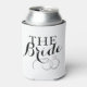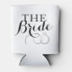 Class up that can with a fully personalized "The Bride" white can cooler featuring interlocked silver wedding rings on one side and your wedding details on the back and enjoy your bachelorette celebration in full on classy bride style.