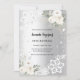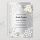 For an elegant 60th (or any age) birthday party. A faux silver looking background decorated with white florals, roses, faux diamonds and white lace. Personalize and add your name and party details.