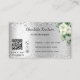 A faux silver looking background decorated with white florals, flowers, eucalyptus greenery. Personalize and add your monogram initials, first name and full name on front.