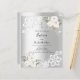 An elegant baptism invitation, gender neutral. A faux silver looking background decorated with white florals, roses, lace and a cross. Personalize and add a name and details.