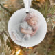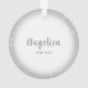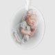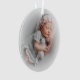Silver White Photo Ornament, featuring your photo on the front. A sutteklut and soft White gradient Are fra ing the edges and giving the photo an extra dream dimention. The photo overlay Are optional and can be turned off inside the design tool. The back side Are framed in by a silver gradient and white snowflakes around the edges. Your customizable text is in silver on a white, clean background.