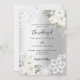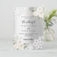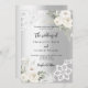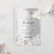 For an elegant and romantic wedding. A faux silver looking background decorated with white florals, roses and white lace. Personalize and add your names and details.