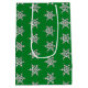 Icy, silver & white snowflake against a dark pine green background gift bag