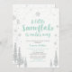 Celebrate a special day for your loved one with this cute winter wonderland invitation! This design features silver glitter snowflakes with a cute wording " A little snowflake is on his way". Perfect invitation for winter theme baby shower or baby sprinkle.