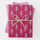 Silver Woodland Pine Tree Forest Pink Raspberry Wrapping Paper Sheet