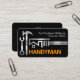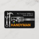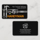 An all black cover features a silver rooftop building silhouette that is made from a silver wrench with a hammer, and spanner beside it. At the top corner lies your prestigious name and phone contact with the oversize yellow business name "HANDYMAN" (which you can change) near the base.