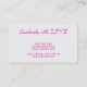 Vibrant bright pink rose colour background, calligraphy writing and silver yarn's pattern; a minimalist and simple design for unique and cute professional business card. Creative for your personal branding as artisan or artist.