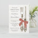 Invite your guests to a comfortable and casual rehearsal dinner with this rehearsal dinner invitation featuring silverware and a red chequered table cloth background.