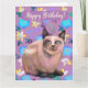 Painting of a silvery grey cat, flowers in background. For all cat lovers, Happy Birthday!