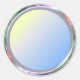 Chrome plated metal sticker for your text, logo or image. Pale blue/yellow circle.