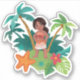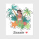 This vibrant illustration introduces Simea, Moana's younger sister, from the animated world of Moana. Simea stands with a bright, adventurous smile, exuding youthful enthusiasm and curiosity. Dressed in a beautifully patterned orange and white outfit that reflects traditional Polynesian designs, she is surrounded by lush tropical flora, a starfish, and the iconic palm trees of their island home. Her playful and explorative spirit is captured perfectly in this image, highlighting her connection to the natural world and her emerging role as a young navigator. This graphic beautifully encapsulates Simea's charm and her potential to follow in Moana's footsteps as a beloved character in her own right.