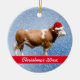 A Simmental bull is wearing a Santa hat on a background of snow. This design is perfect for the Simmental breeder.