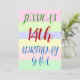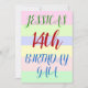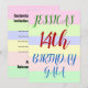 Ce design amusant d’invitation de fête d’anniversaire comporte un message comme "14th BIRTHDAY GALA de JESSICA", où le nom et le numéro d’anniversaire peuvent être customisés. Il dispose également d'un arrière - plan coloré, amusant et au thème géométrique. Les détails de l'événement sur le dos peuvent être personnalisés. Il pourrait être utilisé pour invitation des gens à la fête du quatorzième anniversaire ou à la fête d’anniversaire de quelqu’un. [~Z0000311]