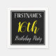 This simple and elegant paper napkin design features a message like "FirstName’s 16th Birthday Party", with the "16th" in fancy yellow-coloured text, within a black-coloured square area featuring a simple border outline. A personalized name can be used. Napkins like these could perhaps be used at a birthday party for somebody who is celebrating their sixteenth birthday. [~Z0000150]