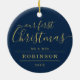 Simple 1st XMAS Wedding Photo Gold Frame Navy Ceramic Ornament