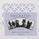 Announce your wedding date to friends and family with this modern Simple 3 Photo Collage Save the Date. Announcement design features three photo placements of the happy couple, clean text design and an elegant diamond pattern on the back.